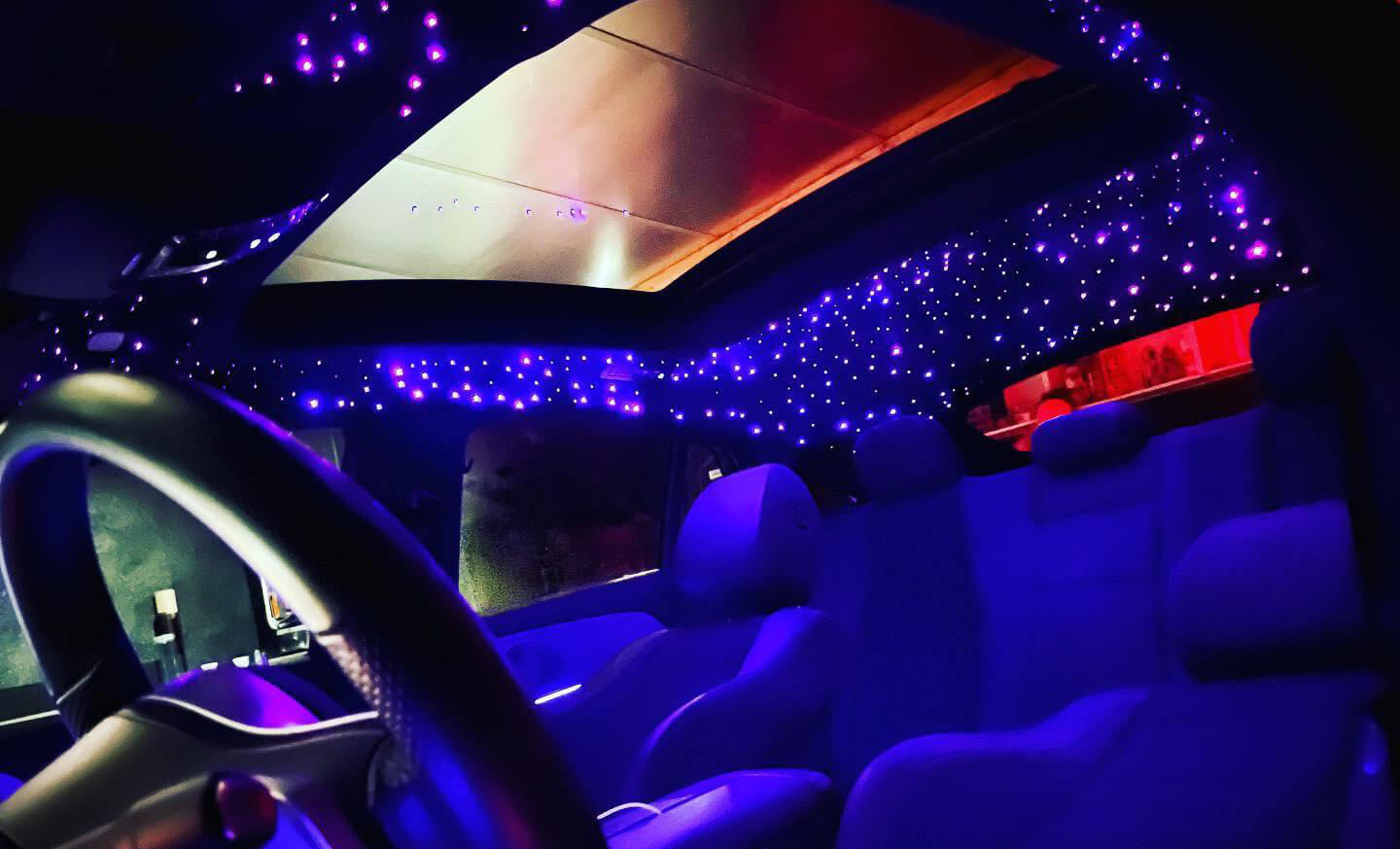 Découvrez nos réalisations sur-mesure en covering, vitres teintées, protection de carrosserie (PPF) et ciels étoilés.